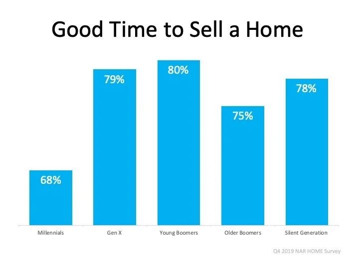 As the graph below shows, as of Q4 2019, 75% of people surveyed indicate they believe now is a good time to sell a home: