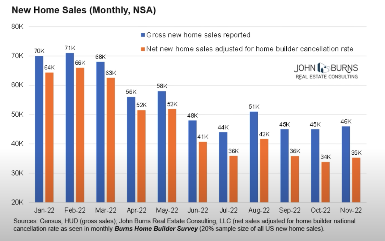 And on top of all that, it is important to note that the figure of 8.6 months is in all likelihood higher than what is being reported because it does not factor in contract cancellations, which are not captured in the Census Bureau and other government data. These cancellations have been accelerating in recent months and topped 11,000 in November out of 46,000 new contracts for purchase, roughly 25% of the total, as you can see in the cart below: